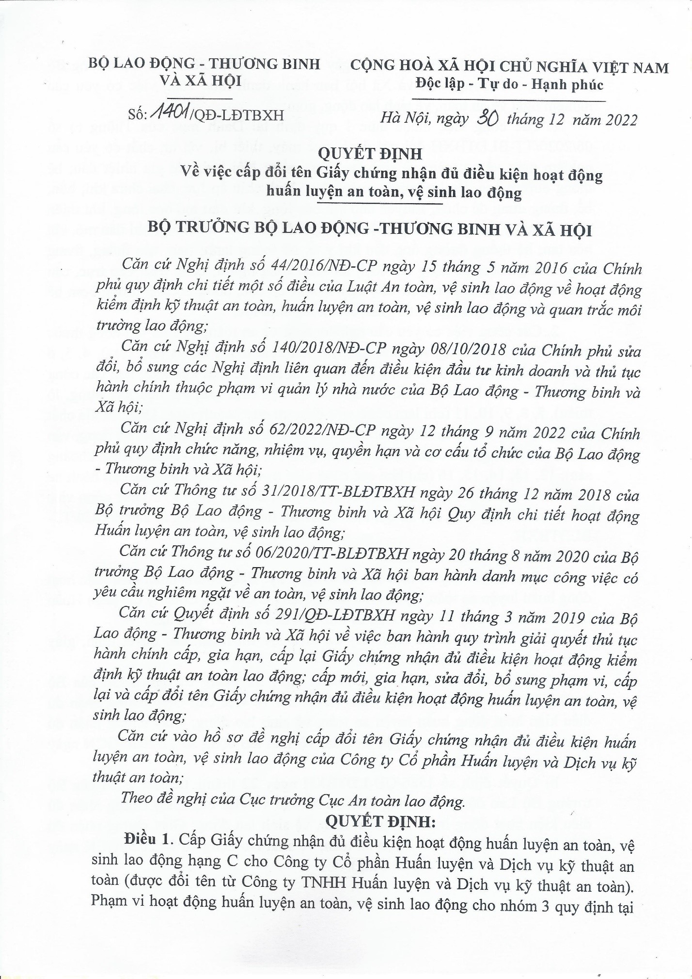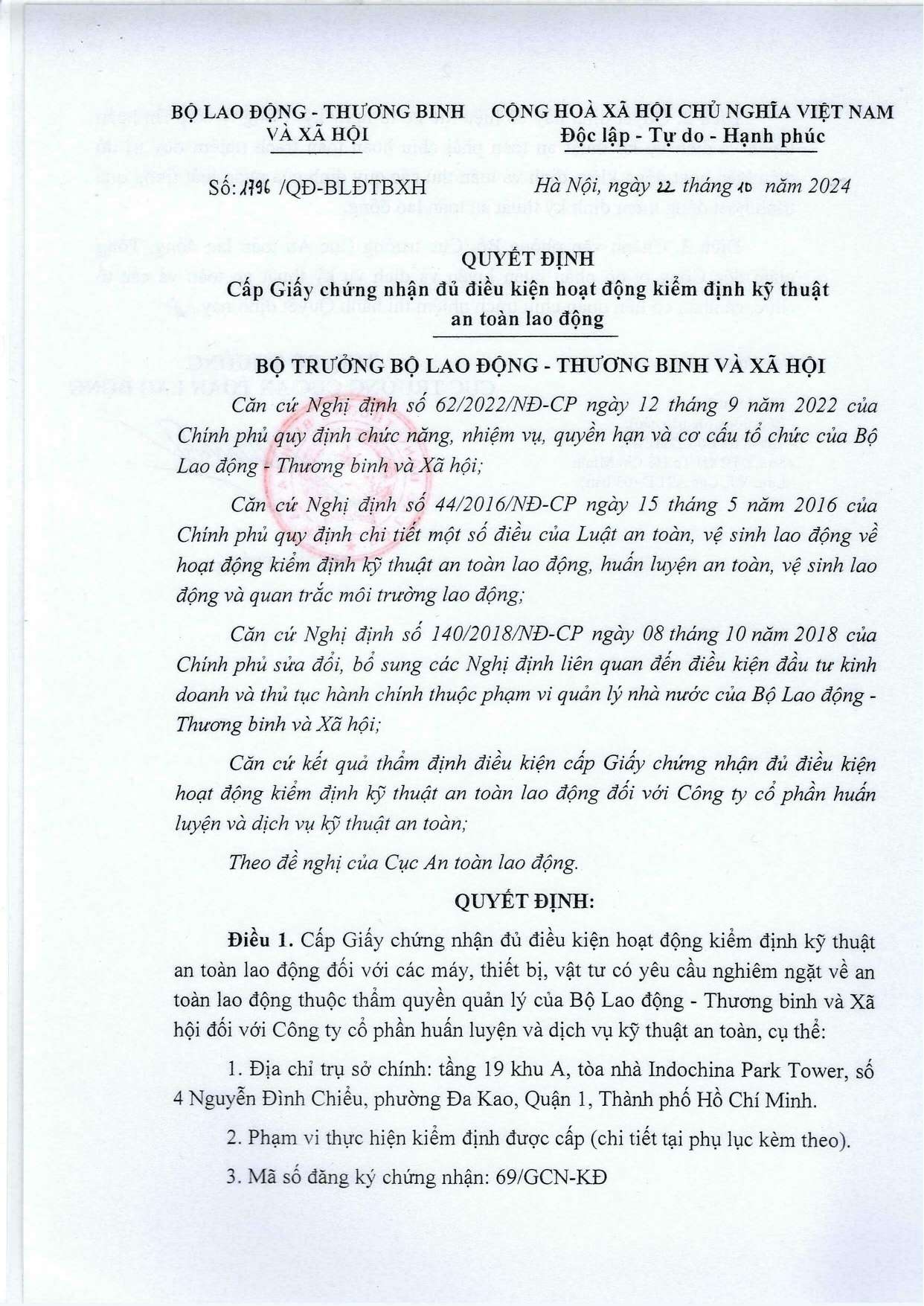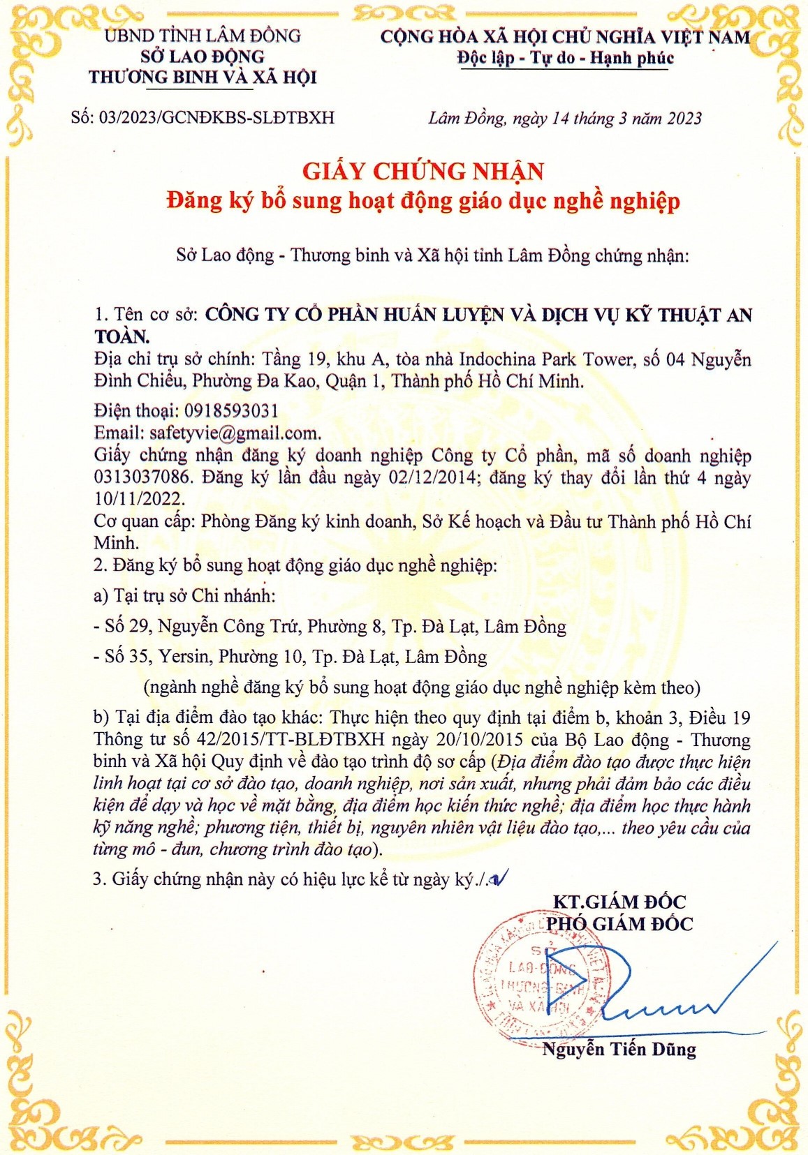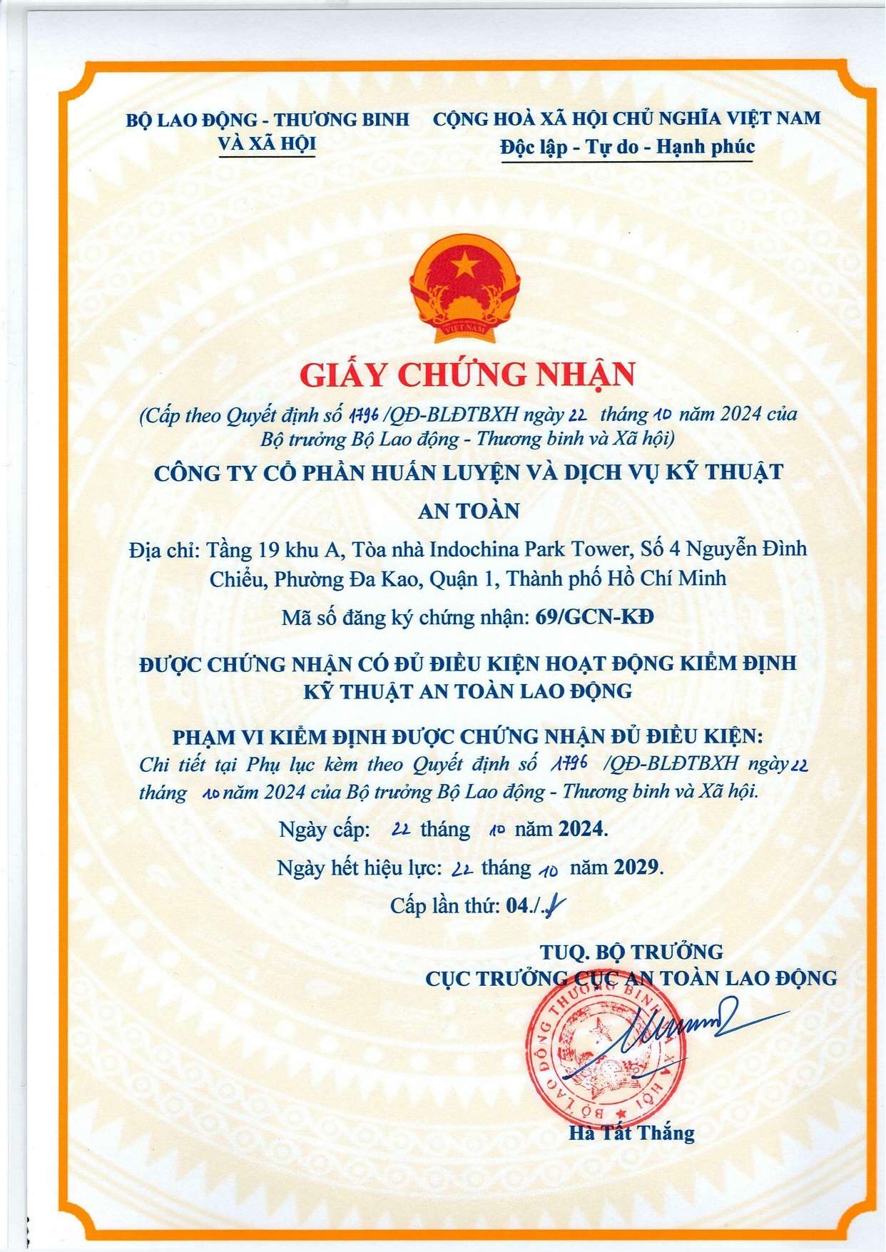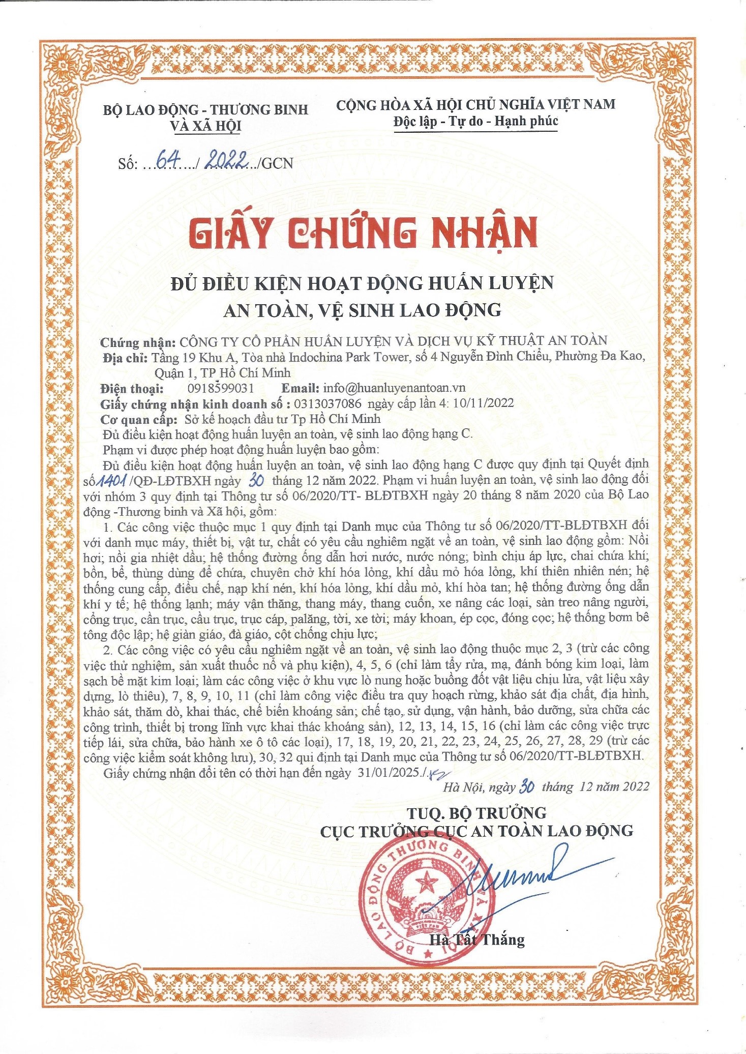 Chào mừng bạn đến với CÔNG TY CP HUẤN LUYỆN & DỊCH VỤ KỸ THUẬT AN TOÀN